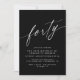 Simple-but-elegant 40th birthday invitations with heading "forty" text in a script font. White font on a contrasting black background.