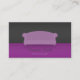 A modern, sleek, stylish and chic business card that is perfect for interior designers, home decorators or furniture businesses. Especially if the business specialises in modern, contemporary, glamourous decor styles. It features a purple sofa with a tufted design on the cushions with a light shadow gradient below the sofa. A black and purple background. Personalise easily with your business details.