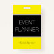 This modern badge design features the message "EVENT PLANNER". The back features a personalised event name and event date(s). A badge like this could perhaps be used to show that the wearer is working for or at an event. [~Z0000307]