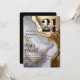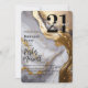 Sleek and modern "21" and elegant script text "twenty one" birthday party design featuring the number "21" overlaid with the age in script on a faux gold, white and grey marbled background. Perfect for celebrating your most sophisticated friends and family.