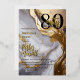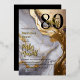 Sleek and modern "80" and elegant script text "eighty" birthday party design featuring the number "80" overlaid with the age in script on a faux gold, white and grey marbled background. Perfect for celebrating your most sophisticated friends and family.