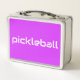 Sleek White PICKLEBALL On Bright Tropical Pink Metal Lunch Box