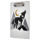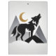 Sleek wolf silhouette howling at a minimalist mountain range under a crescent moon. Monochrome palette (black, white, slate grey) with a single accent colour. Clean, sharp lines for a modern look.