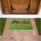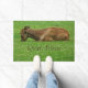 A photograph of a tired Elk calf laying down in a patch of grass mixed with white clovers.