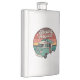 The product is a good size and came exactly as it was pictured. The lid is not attached to the flask, which could be dangerous on drunken nights... The print came out surprisingly well and looks very sharp. Would definitely recommend.
