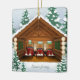 Add rustic charm to your holiday décor with this cosy personalised log cabin ornament. Surrounded by snowy pines and warm inside with bright red tartan blankets and glowing lights, it’s a delightful keepsake for nature lovers, cabin owners, or anyone who enjoys woodland style. Perfect for decorating your own tree or giving as a thoughtful gift.