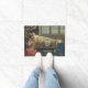 This design features a painting by the British Pre-Raphaelite artist John Collier (1850–1934). It shows a beautiful woman sleeping in a grand mediaeval castle. Two of her sisters are kneeling beside the bed feeling sad and sorrowful. The bed has intricate engravings and carvings. There are expensive fabrics in the curtains and in the women's costumes. They are clearly wealthy noblewomen. There is stained glass in the windows, and outside there appears to be verdant woodland. The image may represent the fairy tale known as Sleeping Beauty, which is about a princess cursed by an evil fairy to sleep for a hundred years before finally being awakened by a handsome prince. The original artwork was painted by John Collier in 1929.
