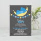 Sleeping Blue Boy Teddy Bear on Moon Baby Shower Invitation