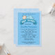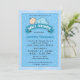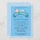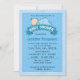 Sweet Invitation with a Sleeping Baby Boy in blue pyjamas. The background is blue dots and blue gingham. The back of the invitation has blue baby feet. Add your party details using our easy template.