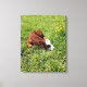 This canvas features a photo of an adorable newborn calf sleeping in the pasture.