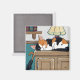 Cute whimsical cat art magnet, turn your fridge in to a work of art! This magnet features a cat painting by Lisa Marie Robinson. "A Calico Nap" - A calico cat sleeping on a cupboard in front of a table lamp. An umbrella rests beside the cupboard. Created from an original painting © Lisa Marie Robinson. All Rights Reserved