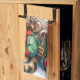 Sleeping Christmas Elf with Calico Kitten Tea Towel