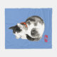 Sleeping Japanese Cat Black and White Fleece Blanket