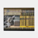 The perfect door mat for cat owners who love books and reading. A close up photo of my silver haired tabby shows her sleeping on a book shelf. It's a mix of two photographs. Her head is resting against the side of an encyclopaedia of flowers from my house. I've tucked her between the shelves of books from the Leadhills Miners Library in South Lanarkshire, Scotland. Founded in 1741 it's the oldest subscription library in the British Isles. Most of the earliest old leather tooled books were on a religious theme, thus titles such as Jesus Christ Our Lord. Other books are Plant Life, Bunyan's Works and Great Britain and The Congo. Above the tabby's head is a book called Good Words. You can change the bottom black trim colour of the design to suit with the customise button. The door mat would be an ideal gift for anyone who works in publishing, including librarians, and perfect for a fun retirement gift or new home present for friends and family with a cat and who collect books.