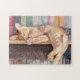 Sleeping Orange Tabby Cat on a Bookshelf Jigsaw Puzzle