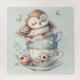 Sleeping Owl in Stacked Floral Teacups Jigsaw Puzzle