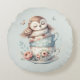 Sleeping Owl in Stacked Floral Teacups Round Cushion