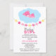 © 2013 Socialite Designs. Cute pink teddy bear sleeping in a cloud baby shower invitation for a baby girl. The design also has a star banner and baby girl text hanging from the banner. All design elements can be moved, resized or deleted to suit your event.