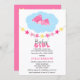 Sleeping Pink Girl Teddy Bear in Cloud Baby Shower Invitation