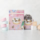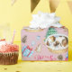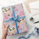 Wrap your holiday gifts in this adorable sleeping puppy wrapping paper. A soft pink background with an adorable sleeping puppy in a basket and several holiday elements throughout.