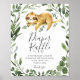 Give your guests a lovely direction with our sleeping sloth diaper raffle sign, featuring watercolor greenery eucalyptus garland and elegant handwritten style font.
