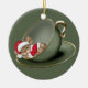 Cute Christmas sleeping mouse dressed as Santa Claus in a tea cup .. fun design .. hanging Christmas tree ornament / decoration .. personalise with your own text on the back, perfect customisable decoration for Christmas .. a unique keepsake .. Christmas tree decorations by Ricaso