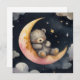A delightful watercolor piece showcasing a sleepy bear nestled on a glowing crescent moon, surrounded by soft clouds and stars. This heartwarming design is perfect for nursery wall art, bedtime-themed decor, or as a gift for young dreamers. Bring the magic of the night sky into your home with this soothing artwork.