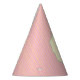 Make the celebration even more adorable with this sleepy cat birthday party hat featuring a pink kitty, tiny party hat illustration, cream label styling, mint bow accents, and cheerful yellow stripes. A sweet matching accessory for a 1st birthday party.
