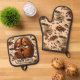 Capture that pre-caffeine feeling with this hilarious and stylish coffee themed kitchen set the potholder features are sleepy yawning coffee bean character with a relatable morning greeting while the matching oven showcases a chic repeating pattern of elegant coffee cups and roasted beans blending a touch of vintage café charm with modern humour this heat resistance set is perfect for the home chef who doesn't quite function until the first brew is poured. It makes a fantastic high-quality gift for the coffee addict in your life