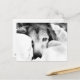 sleepy dog on bed cuddle black white postcard