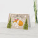 A thank you card featuring an illustration of a fox lounging on a tree branch between two evergreen trees surrounded by stars. Background is card stock inspired. Matching baby shower invitations at coordinating items are available at Jill's Paperie.
