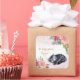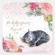 A sleepy cat surrounded by delicate flowers. The purr-fect (perfect) baby shower! Simulated gold glitter.
