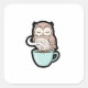 Sleepy Owl on Coffee – Cute Cozy Illustration Square Sticker