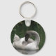 This awesome keychain features a photograph of a beautiful swan. The swan is a juvenile bird, you can tell by the grey feathers on the head and the lack of an orange beak. It looks like the swan is sleeping but it is actually preening its feathers.