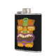 Illustration of Sleepy Tiki Statue with Open Mouth, Funny Black Flask.