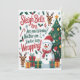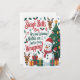 A snowman, reindeer and tree with a funny Christmas message, Sleigh Bells Ring Are you listening? Neither am I I'm too busy Wrapping.