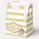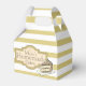 Slice of layered cake on light brown and cream stripy gable favour boxes. Great to customise for your homemade cakes.