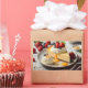 Slice of cheese cake with whipped cream ontop rectangular sticker