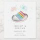 Perfect for engagement parties, rehearsal dinners, or wedding showers, these festive wine bottle labels feature a watercolor slice of layer cake in rainbow hues, topped with sparklers and aqua confetti. Personalise with your names and wedding date or event date beneath.