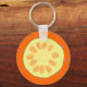 Painting of a slice of ripe pineapple is printed on custom keychains. The background colour can be customised.