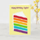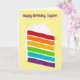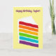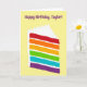 Send a colourful personalised message with this custom greeting card. It features an illustration of a big piece of rainbow coloured layer cake. The message on the front and on the inside is ready to be personalised with your own text.