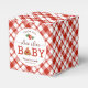 Send guests home with a slice of thanks using these “Slice Slice Baby” pizza-themed baby shower favour boxes! Featuring fun pizza graphics, bold red accents, and playful script, these boxes are perfect for small treats or keepsakes at your co-ed or couples shower. A fun way to tie your food-themed baby shower together. Personalise with a thank-you message or the parents' names.
