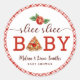 Seal your baby shower favours with fun using this “Slice Slice Baby” pizza-themed round sticker. Perfect for co-ed or couples baby showers with a playful twist, this sticker features bold red design elements and pizza graphics that pair perfectly with your party decor. Use on favour bags, boxes, or envelopes for a memorable and cohesive finish. Customise the text to suit your event.