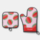Sliced watermelon pattern on pink oven mitt & pot holder set