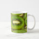 Slices of fresh and ripe kiwi fruit in rowsbrown,c coffee mug