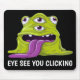 Add a touch of fun to your workspace with this quirky mouse pad featuring a slimy monster with a few eyes, ready to keep an "eye" on your every click. The playful design, combined with the phrase "Eye See You Clicking" makes this mouse pad a perfect blend of humour and functionality. Whether you're at work or gaming, this unique accessory is sure to bring a smile to your face and keep your desk looking cool.