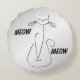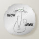 Slinky Black Cat Meow Meow Green Eyes on silver Round Cushion
