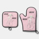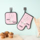 Slinky Black Cat says Meow Meow Pink Oven Mitt & Pot Holder Set
