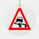 Slippery Road Warning Symbol Ceramic Tree Decoration