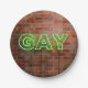 SlipperyJoe illuminated gay neon sign bright vivid Paper Plate